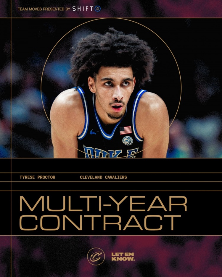 7月3日讯 骑士官方宣布,骑士正式用一份多年合同签下今年的次轮49号秀泰瑞斯-普罗克特。